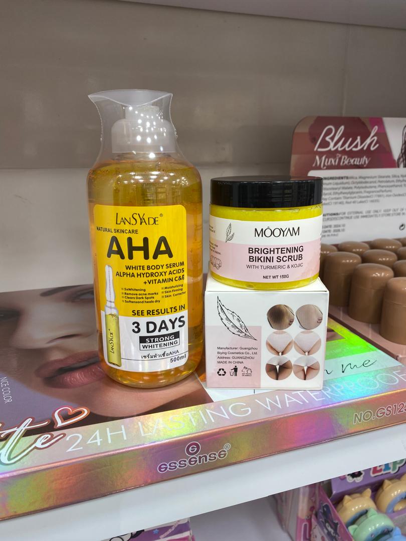 سرم روشن کننده لنسیاد مدل AHA مایع زرد رنگ و اسکراپ روشن کننده نواحی حساس دو محصول فوقلاده سرم ۱۸۰۰۰۰و اسکراپ ۱۳۵۰۰۰۳۱۵٬۰۰۰ تومان