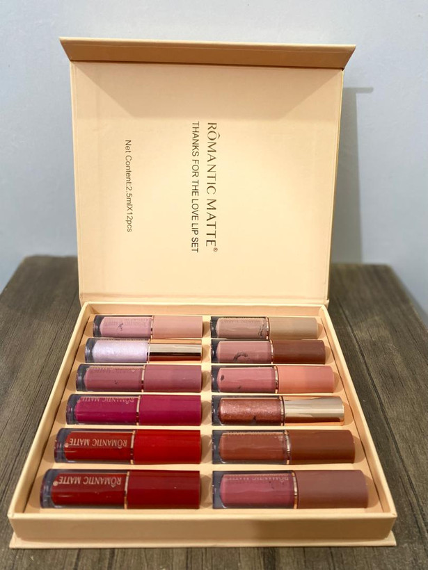ست رژ لب مایع Romantic Matte | پک ۱۲ عددی پک کامل از محبوبترین رنگهای رژ لب مات با بافت سبک، ماندگاری بالا و پیگمنت قوی. مناسب استفاده روزانه و مهمانیها. 💄 ساخت کشور چین .